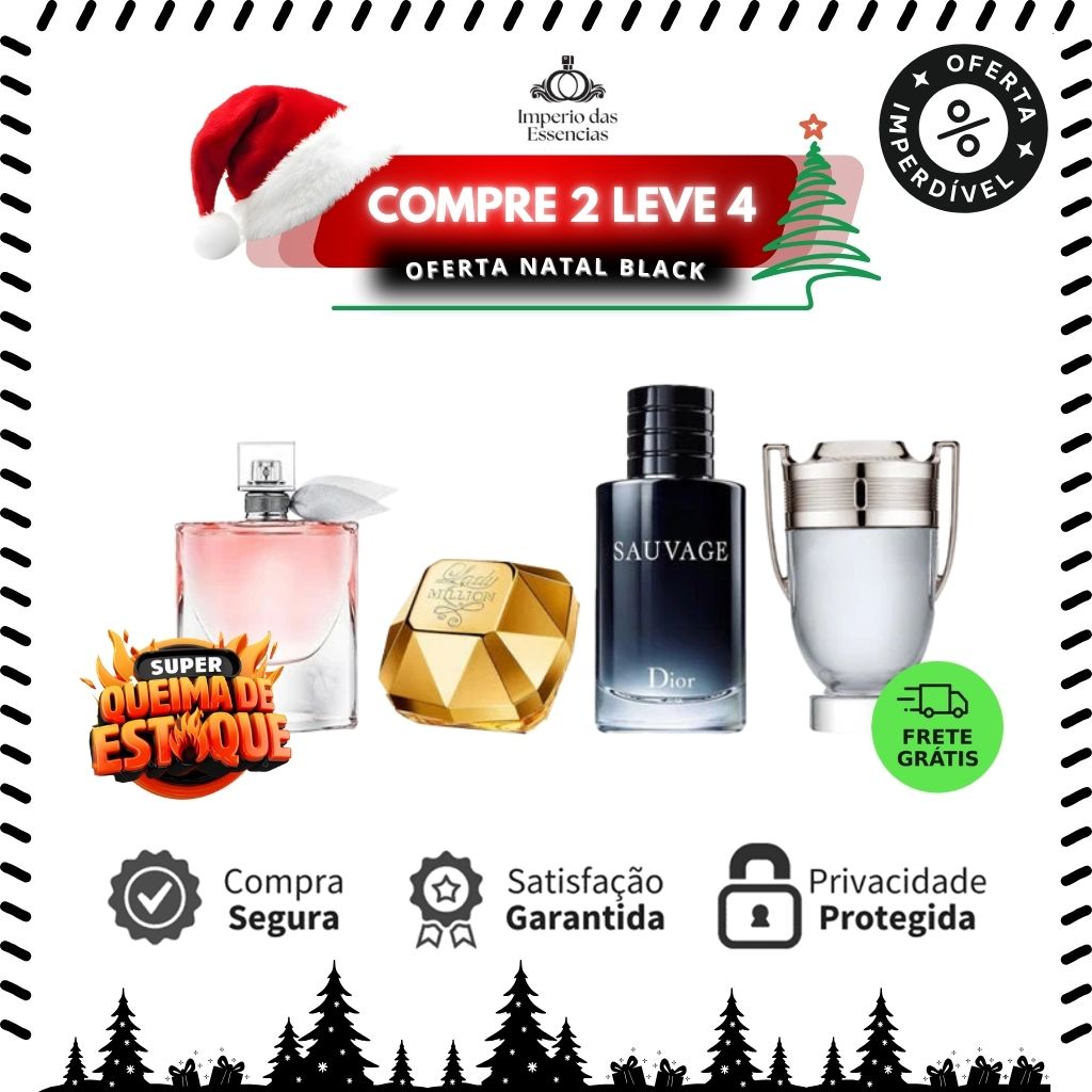 Combo 4 Perfumes Masculinos Importados (100ml) - La Vie Est Belle | Lady Million | Invictus | Sauvage [FRETE GRÁTIS] [PROMO NATAL BLACK]