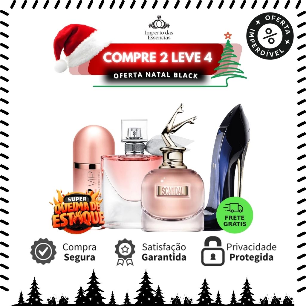 Combo de 4 Perfumes Femininos - Scandal, 212 VIP Rosé, La Vie est Belle e Good Girl [PROMO NATAL BLACK]