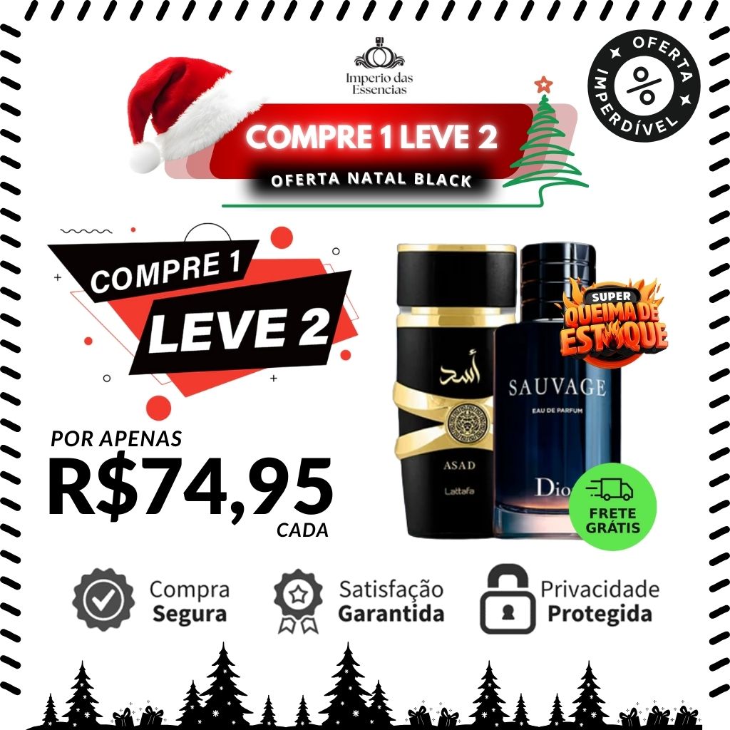 Kit 2 Perfumes Importados - Árabe Lattafa ASAD + Sauvage (100ml) - [PROMO NATAL BLACK]